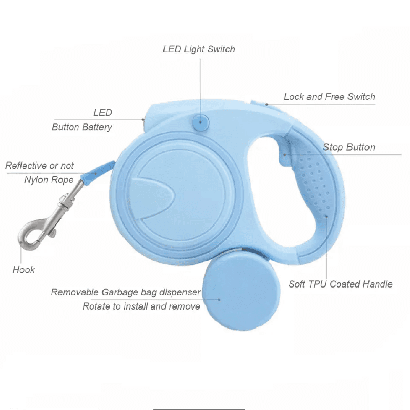 Uso: La correa retráctil es adecuada para perros pequeños y se utiliza durante paseos diarios, entrenamiento y actividades al aire libre. La correa permite que el perro explore su entorno mientras mantiene un control cercano sobre él.
